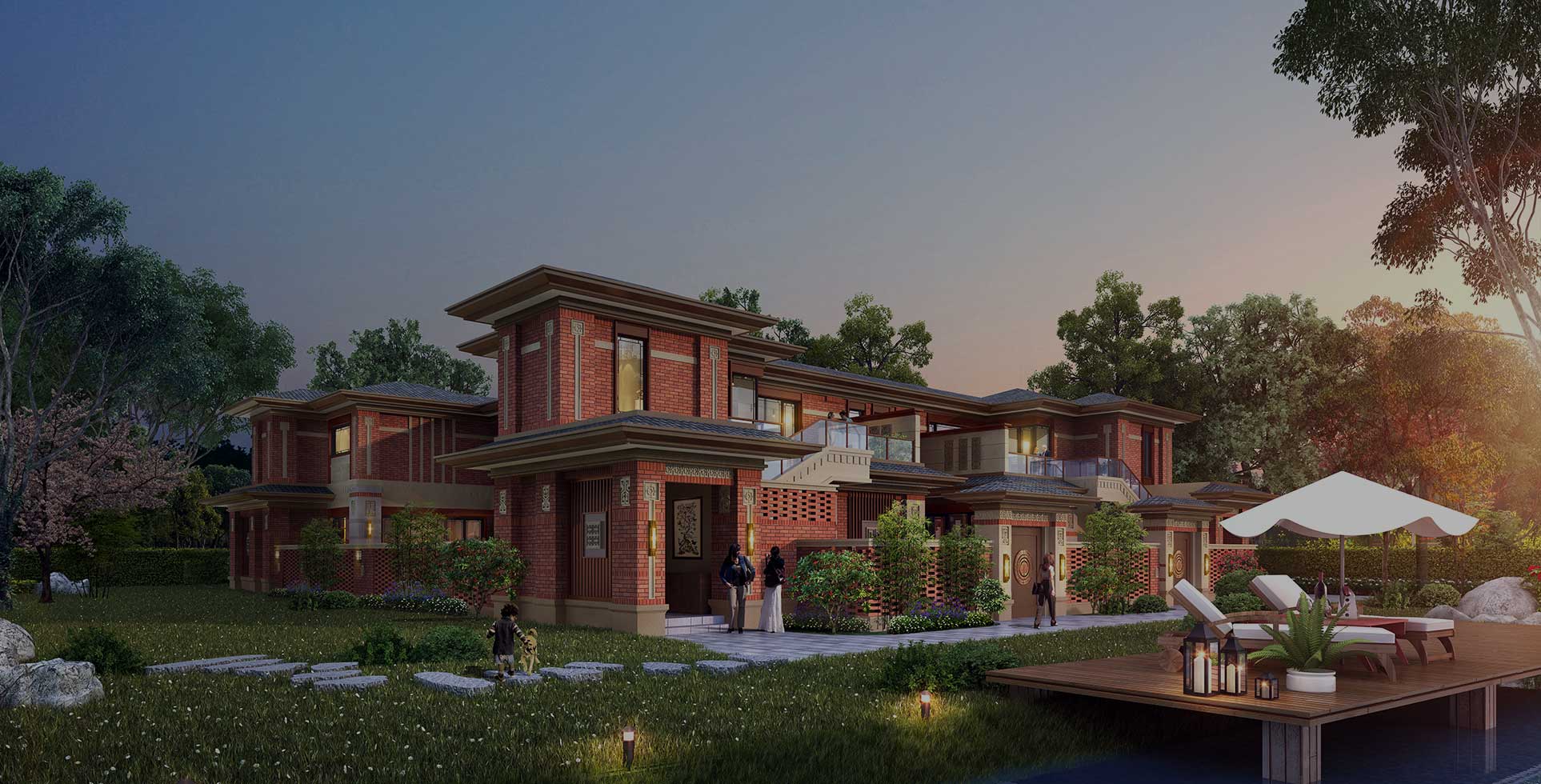 設計以項目是景區(qū),建筑是景點為思路,建造首屈一指的時節(jié)心靈度假區(qū),呈現(xiàn)景區(qū)級度假生活方式。打造塔、坊橋、溪、林、園六重美景。